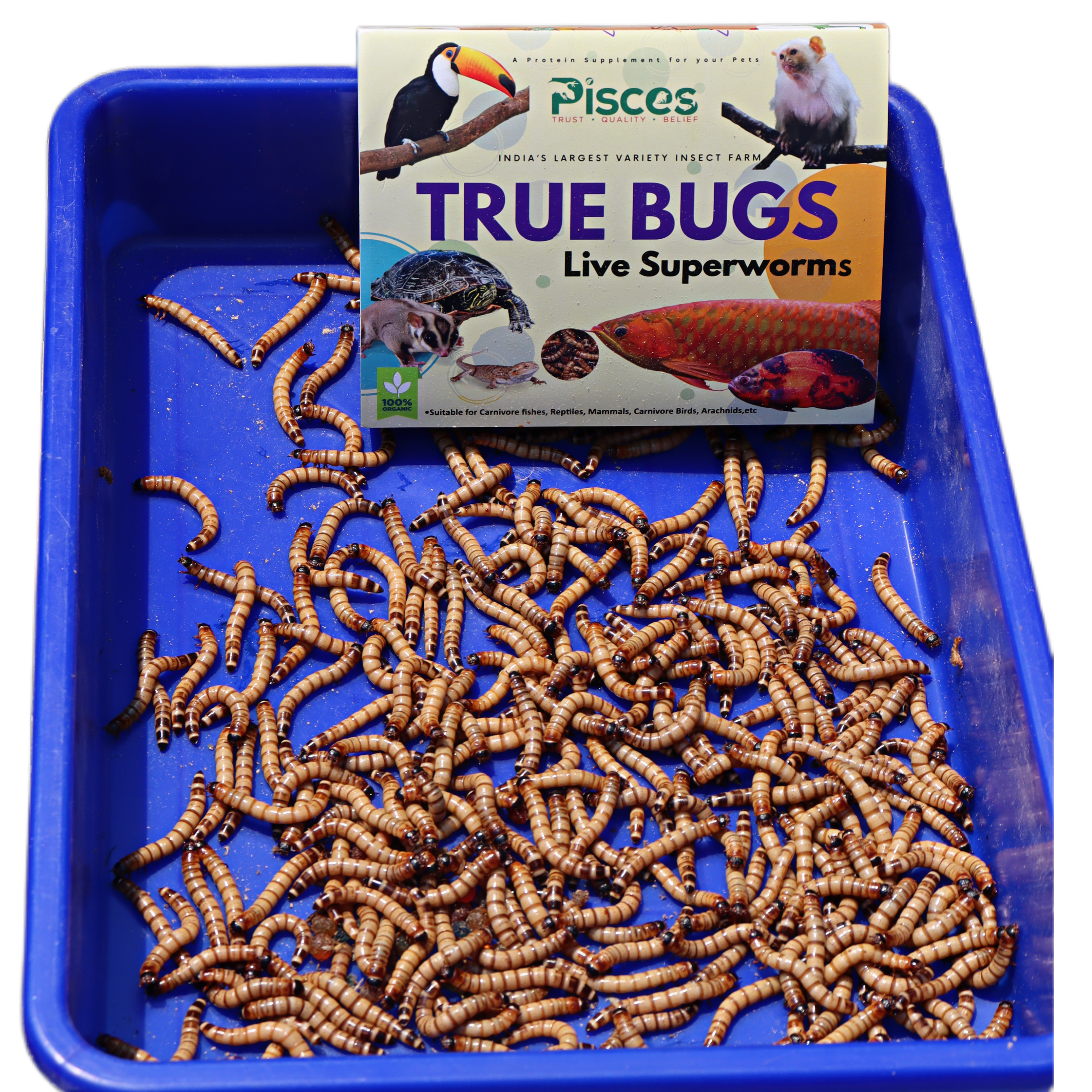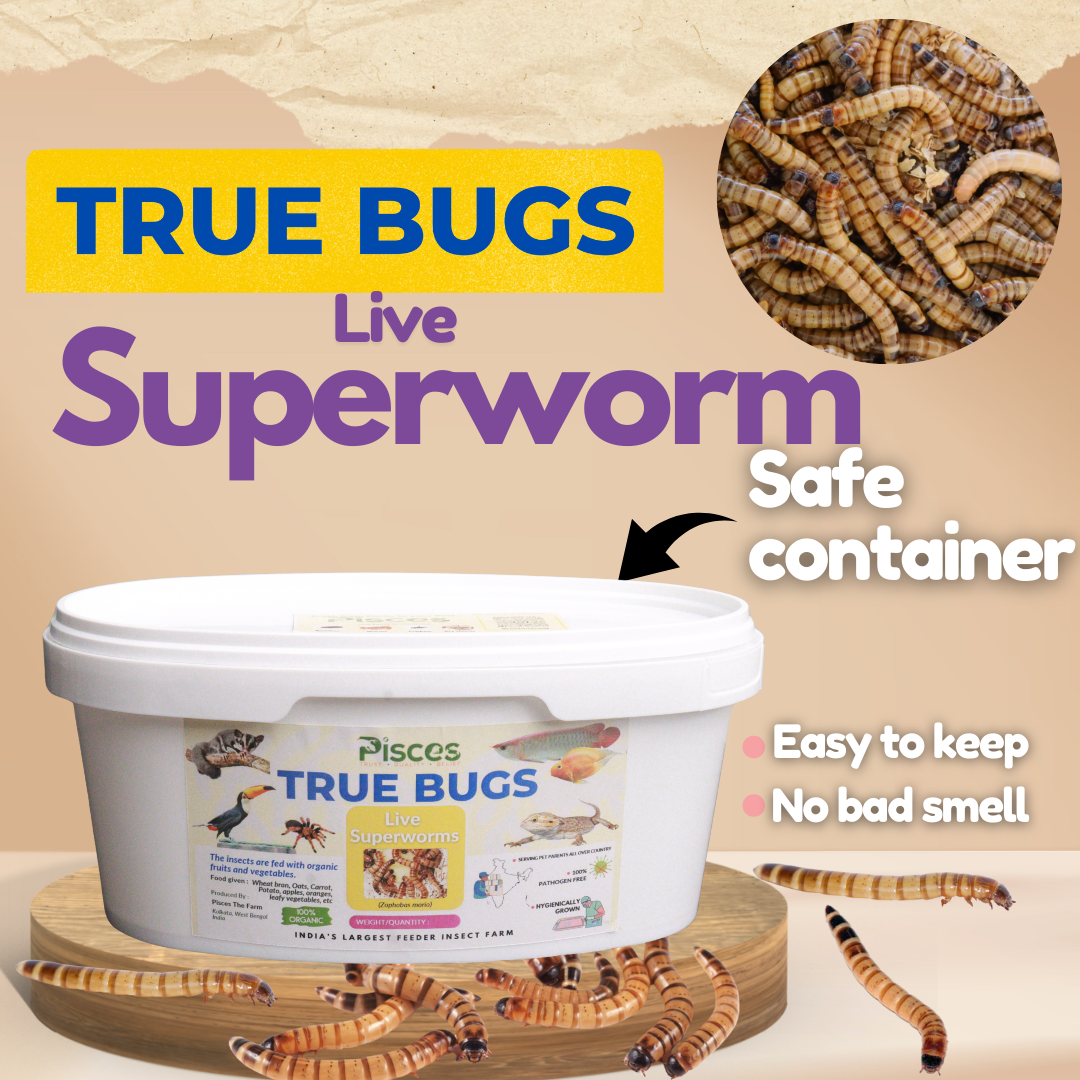 Our premium-quality superworms (Zophobas morio) are the ideal live feeder insects for reptiles, amphibians, birds, and fish. Rich in protein and easy to digest, superworms are a nutritious and active addition to your pet's diet. Available in bulk quantities, these worms are known for their longevity, making them a reliable and healthy feeding option.